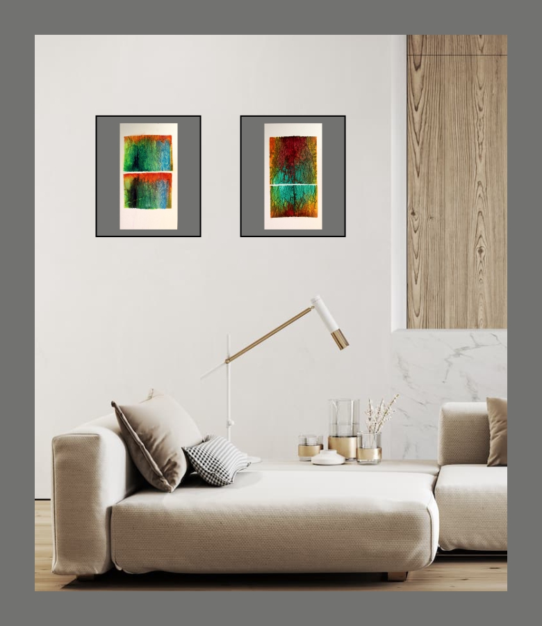 A galériában megtekinthető festmények egy sorozat részei. Már 7 – 8 éve készítem ezeket a képeket melyek egy belső utazás részei. Az alkotások farostlemezre (25x40cm) ragasztott papírlapokra akvarell, tus, tinta, akril technikával készülnek. A képek keretezve vannak, 40x50cm-s keretekben megvásárolhatók. Elhelyeztünk benne inspirációs megoldásokat, látványokat. A képek részleteiből vagy egészéből lehet reprint megoldással falitapéta és egyéb látványos grafikai megoldásokat alkalmazni kinek milyen színvilág dominál az enteriőrjébe. Egyedi képmérettel és elképzeléssel keressenek elérhetőségeim egyikén. Köszönettel. Kefó