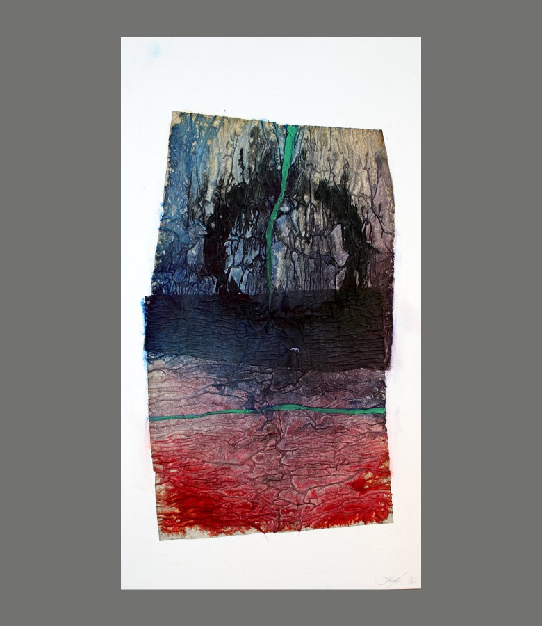 A képpel találkozni mindig egy élmény. A kép él és hatással van ránk. A keretbe zárt kép maga egy valóság. A művész belső világának megjelenése. A keretben megjelenő, síkból kiemelkedő fehér lapok e belső világnak egy másik dimenzióját jeleníti meg. A fehér lapon megjelenő mértani formák ebben a szellemi világból manifesztálódnak. Ezek a formák magukban vagy egymáshoz való viszonyukban egyfajta harmóniát, irányultságot, feszültséget fejeznek ki. Erők feszülnek vagy simulnak egymásra. A vékony papírlapok sérülékenyek mégis határozottak. Ezekben a formákban színek úsznak, oldódnak, keverednek. Néhol gyengéden folynak egymásba, van mikor erőteljes energiával fedik el a teret. A kép jelenléte a térben lehet hangsúlyos, erőteljes vagy épp gyengéd. Mint egy illat, zene vagy egy íz. Az alkotó saját belső élményeit, energiáját, önmagát használja képeihez. Az alkotás visszahat az alkotóra és ezáltal egységbe, harmóniában alakulnak. Az művész célja létének megismerése, alakítása, megélése az alkotás folyamatában. Az alkotás számára életút, mint mikor azt megfogalmazta. ,, A Zen-buddhizmus ösvényein járva, megtapasztalva a teljesség harmóniáját mint ,,rangnélküli igaz ember” élem életemet. Köznapi lélekkel alkotni nem célom, hanem eszközöm csupán a racionális értelmen túl is vezető úton. „